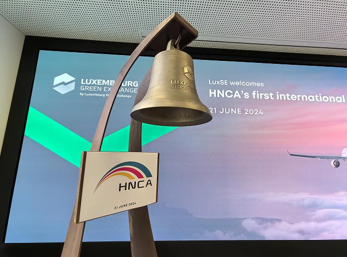 当地时间6月21日上午,中豫航空集团以河南航投为主体发行的3年期人民币境外债券上市仪式在卢森堡证券交易所举行。这是中国企业在欧洲发行的首只支持可持续航空燃料(SAF)的绿色债券,也是河南企业发行的首只离岸人民币绿色债券,郑卢“空中丝路”资金融通实现新突破。